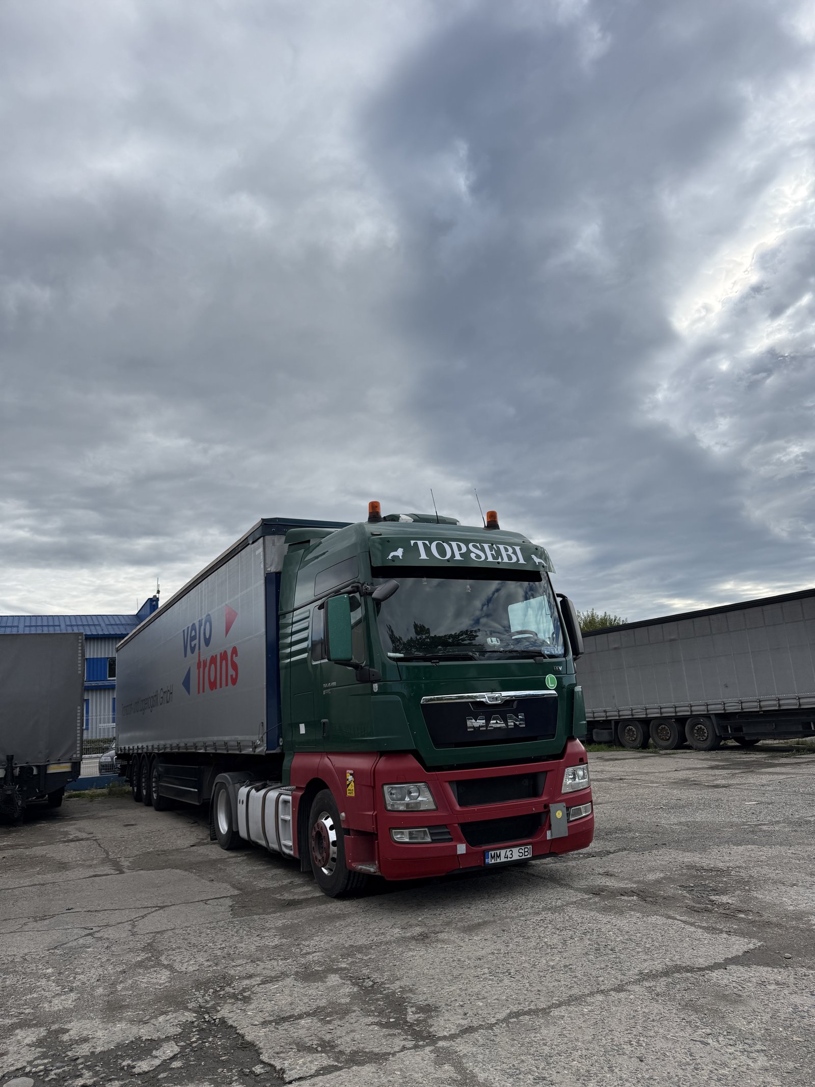 Capete tractor și semiremorci cu prelată, pregătite pentru exploatare în condiții meteo severe specifice nordului Europei.